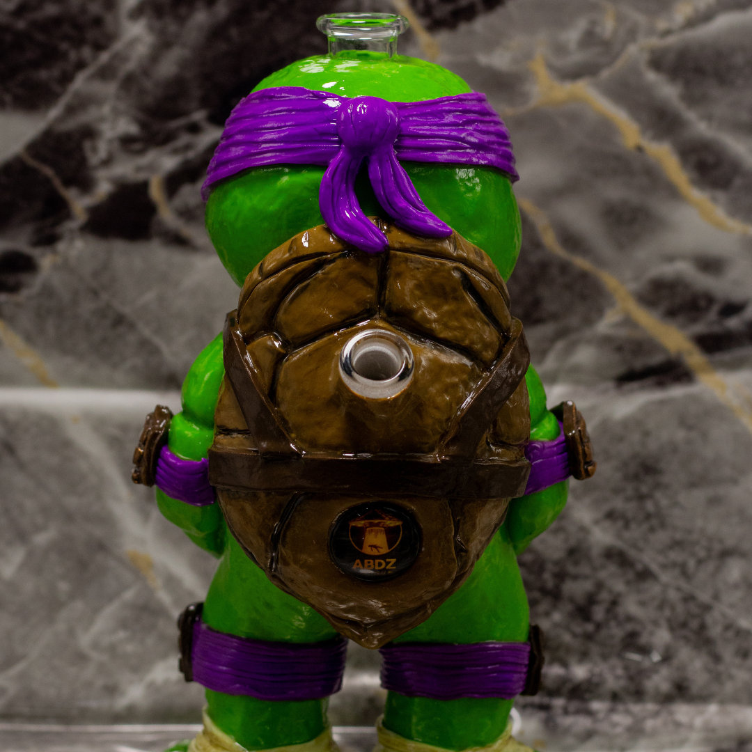Bong com design temático Tartaruga Ninja, ideal para quem quer um acessório com visual marcante e, ao mesmo tempo, funcional para o dia a dia. Estrutura firme e confortável de usar, oferecendo uma experiência mais suave graças à passagem pela água (filtragem).