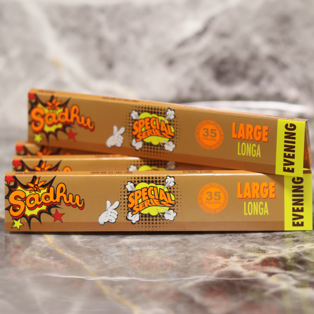 A Seda Sadhu Large Longa Evening é ideal para quem busca uma experiência mais suave, elegante e bem aproveitada. Com papel de alta qualidade, ela proporciona queima uniforme, controle no preparo e uma sessão mais equilibrada do início ao fim.